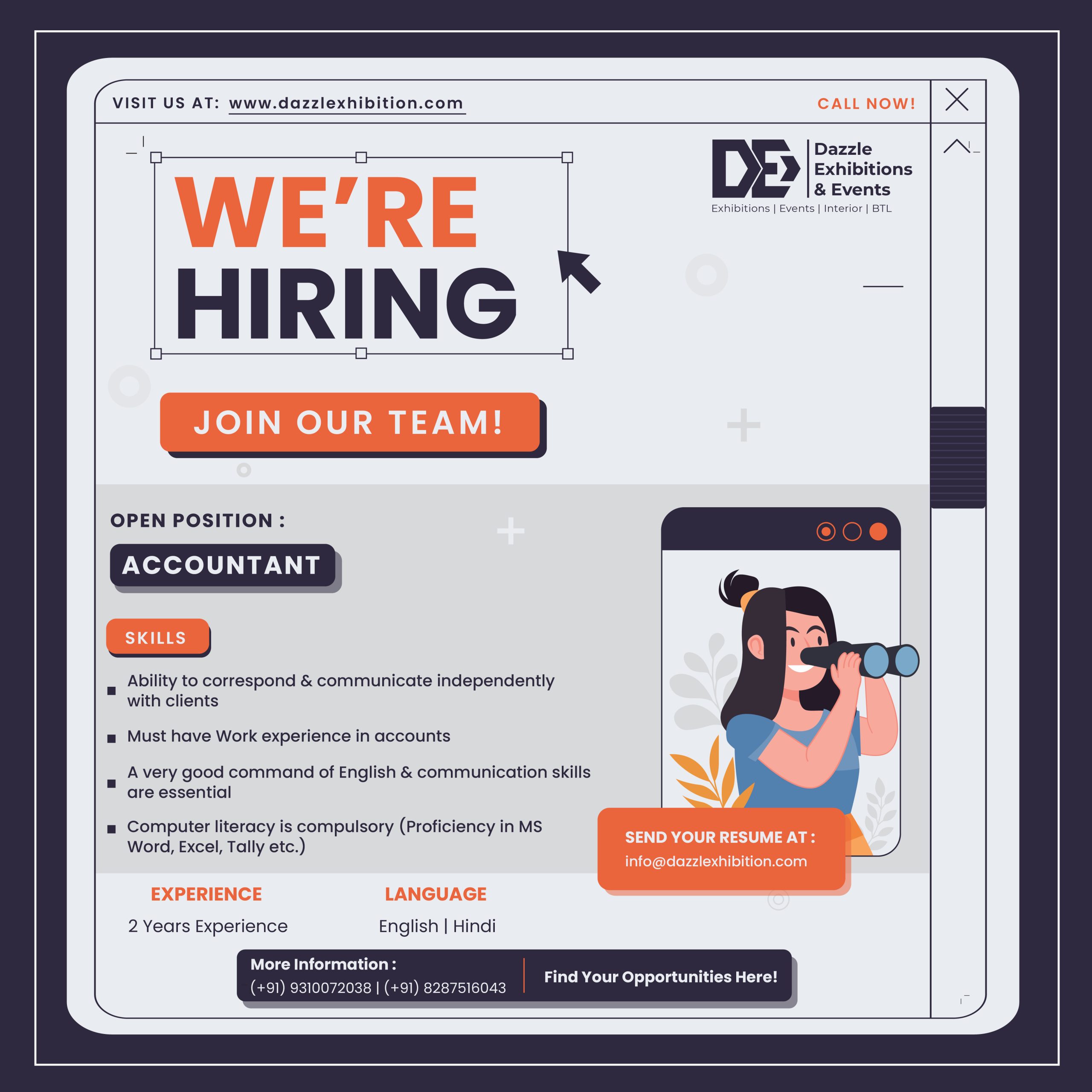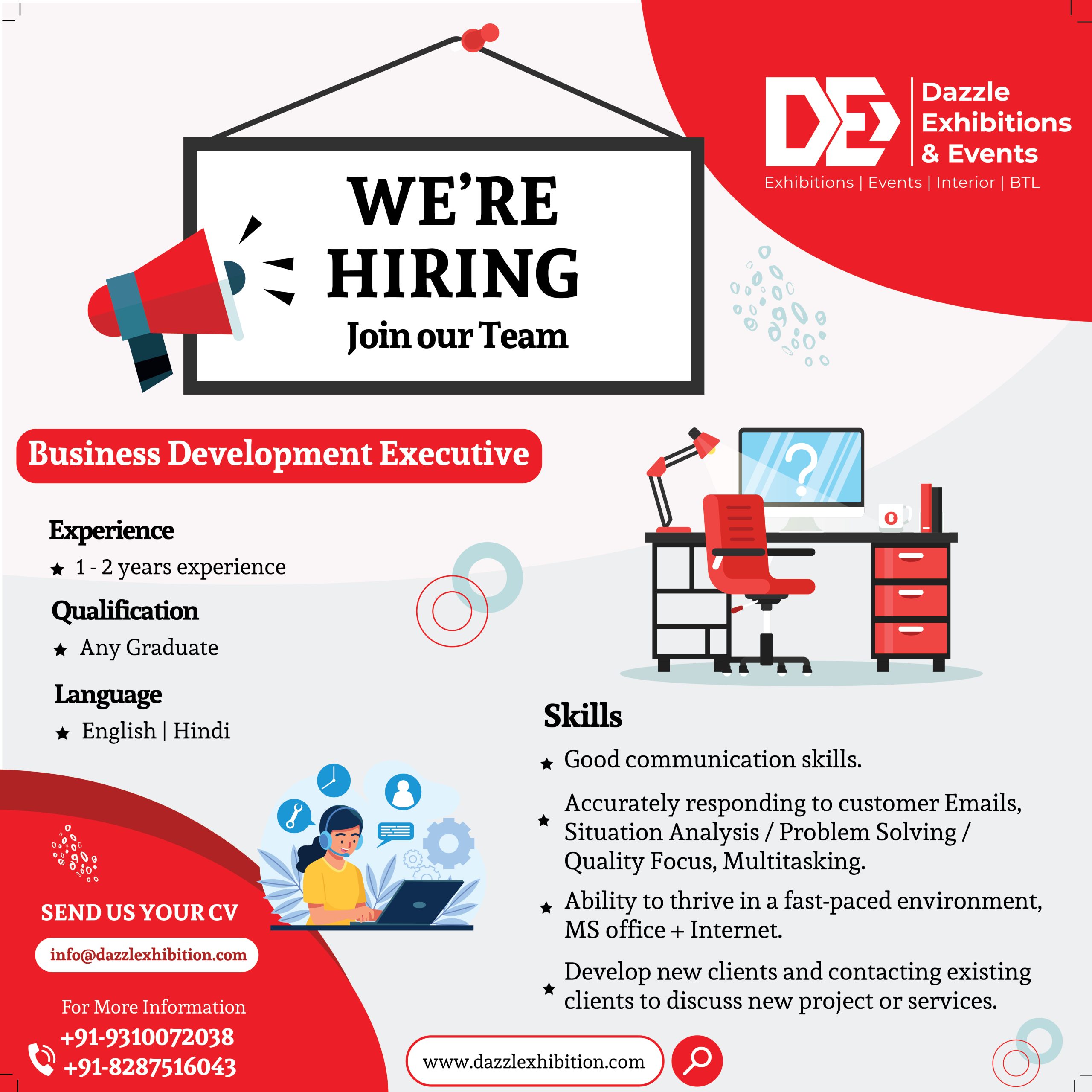 Please send us your resume on info@dazzlexhibition.com